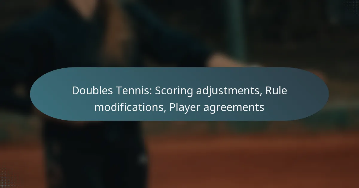 Doubles tennis features unique scoring adjustments and rule modifications that differentiate it from singles play, including no-ad scoring and changes to tiebreaker rules. These alterations not only enhance gameplay but also require players to establish clear agreements regarding roles and strategies, fostering effective communication between partners. Understanding these elements is crucial for teams aiming to optimize their performance on the court.