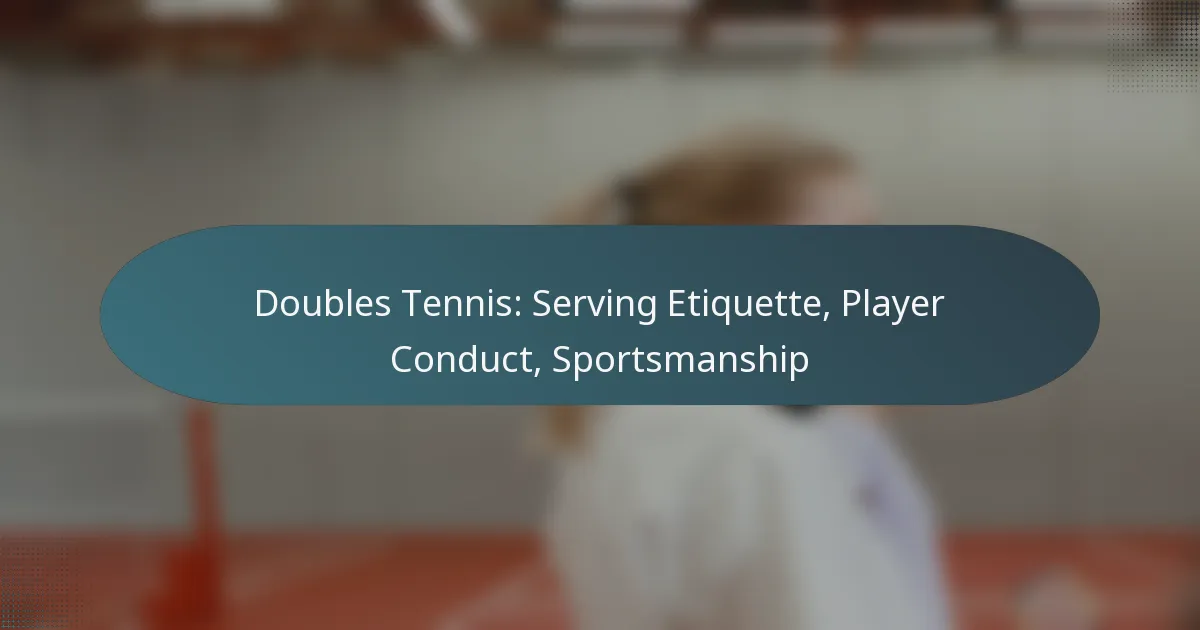 Doubles tennis requires players to adhere to specific serving etiquette and conduct to promote a fair and enjoyable game. Key elements include maintaining proper serving order, effective communication with partners, and upholding sportsmanship, which emphasizes respect and integrity towards all participants. By prioritizing these values, players can enhance teamwork and create a positive atmosphere on the court.